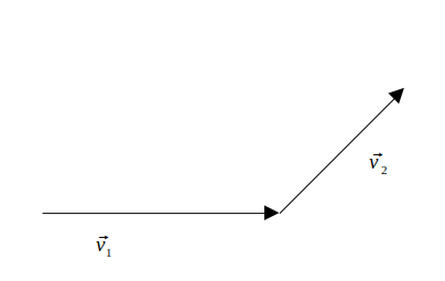 加速度も速度同様、平面上で定義することが可能です。今、\(t_0\)秒のときにA地点にいて、それからB地点を経由してC地点まで達したときに\(t_1\)秒かかったとします。A地点からB地点間の速度を\(\overrightarrow{v_1}\),B地点からC地点間の速度を\(\overrightarrow{v_2}\)としてベクトルで表すと以下のようになっているとします。